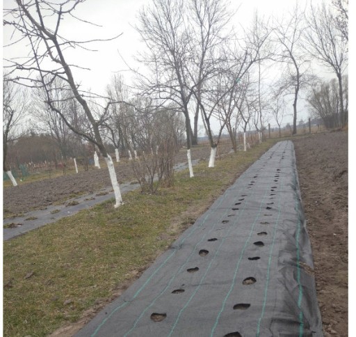 AGROTKANINA UV z gotowymi otworami pod sadzonki truskwek, ogórków, sałtaty, pomiadorów i innych.