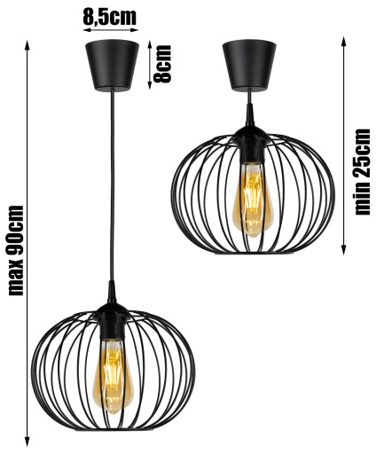 - Rodzaj żarówki: E27 dowolny rodzaj (zwykła, energooszczędna, led)