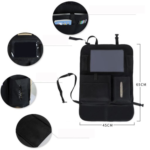 Duży i pojemny organizer przeznaczony na tył przednich foteli samochodowych, dzięki któremu wszystkie niezbędne rzeczy zawsze znajdą w zasięgu ręki, a we wnętrzu samochodu będzie panował porządek.
