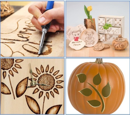 Jeżeli masz dużo pomysłów na zdobienie drewnianych przedmiotów, ta wypalarka pozwoli Ci na łatwą ich realizacje. Zdobić możesz: zabawki, sprzęty kuchenne, meble, skrzyneczki, pudełka,wizytówki na drzwi, zakładki do książki, biżuterię, ozdoby świąteczne, rysować, obrazki,portrety.