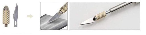 Załączony nożyk po rozgrzaniu ułatwi cięcie wielu materiałów.
