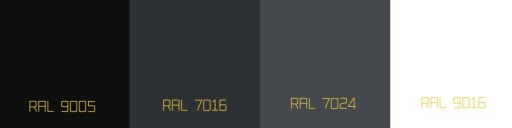 - Kolor elementów metalowych: RAL 9005(czarny) ; RAL 7016(antracyt) ; RAL7024(grafit),