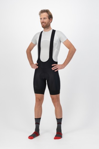 Nazwa mówi wszystko: spodenki na szelkach Essential są, podobnie jak ich wersja zimowa, niezbędnymi spodenkami dla prawdziwych entuzjastów jazdy na rowerze. Spodenki na szelkach mają ciasny krój Race i są wyposażone we wkładkę Comfort Gel. Ta wkładka jest odpowiednia na średnie dystanse i zapewnia, dzięki zerowemu tarciu, wstępnie ukształtowanym skrzydełkom i miękkiej w dotyku górnej warstwie, że jest wygodnie w siodle. Spodenki na szelkach Essential są wygodne nie tylko dzięki wkładce, ale również materiał zapewnia najwyższy komfort w miesiącach letnich. Szelki są bezszwowe z przodu, a przewiewna siateczkowa wstawka z tyłu jest super cienka i zapewnia optymalną wentylację. Ponadto spodenki na szelkach są wykonane z 4-kierunkowego elastycznego materiału. Elastyczny lekki materiał zapewnia optymalną swobodę ruchów Opaski na końcach spodenek są bardzo cienkie, a sylikonowy pasek od wewnątrz, który zapewnia, że spodenki pozostają na swoim miejscu podczas jazdy na rowerze Krótko mówiąc, spodenki na szelkach Rogelli Essential są niezbędne dla każdego miłośnika jazdy na rowerze, który tego lata chce cieszyć się dystansem!