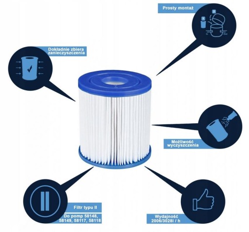 Filtr do basenu jest dostosowany do basenów marki Jilong o numerach artykułu 951019, 951020 i 006848.