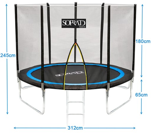 - Średnica (ze słupkami): 312 cm (10ft)