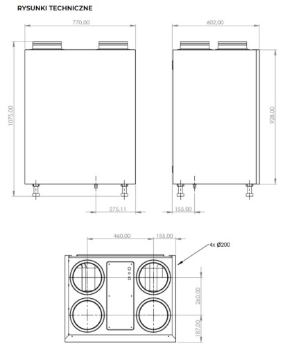 2. Przyłącza podłączenia do systemu: Ø200x4szt. Rekuperator AIR EXPERT – 400V