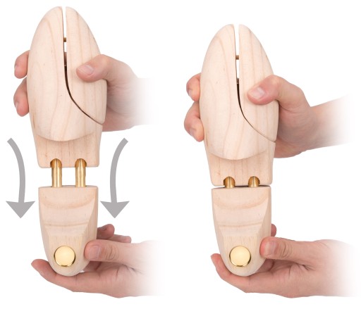 Przednia część prawideł składa się z dwóch elementów połączonych ze sobą sprężyna na prowadnicy. Po umieszczeniu prawideł w butach sprężyna rozpycha oba elementy, dzięki czemu wnętrze butów jest szczelnie wypełnione i skóra butów dobrze naprężona.