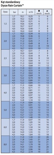 - Dysze Rain CurtainTM o standardowym kącie: 25