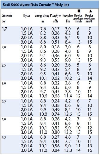 • Zestaw dysz zawiera dysze o małym kącie oraz dysze standardowe typu Rain CurtainTM -