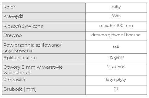 Płyta trójwarstwowa 3-SO lakierowana, o powierzchni 500x1500mm i grubości 21mm.