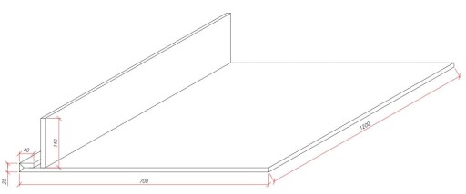 - Wymiary wg rysunku: 120 cm x 70 cm x 2,5 cm x 4 cm