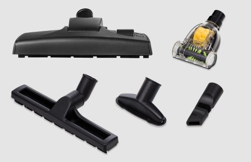 - Szczotki: szczotka uniwersalna przełączalna do podłóg i dywanów, szczotka parkietowa, ssawka szczelinowa 2w1, szczotka mała, turboszczotka