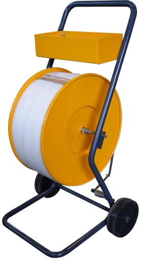 Porządne stalowe urządzenie, które zapobiega plątaniu się taśmy dzięki czemu znacznie ułatwia i przyspiesza pracę. Urządzenie jest wyposażone w hamulec dociskający taśmę oraz półeczkę do której można włożyć napinacz, zapinki, nożyczki, czy inne niezbędne akcesoria.