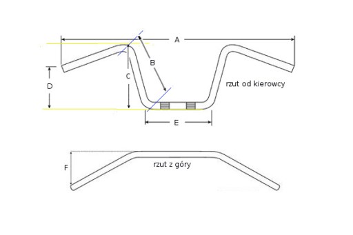- F 150mm długość zagięcia ramion do kierowcy