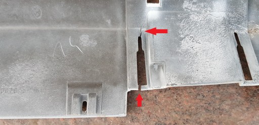 - Pęknięcie w miejscu na zaślepkę, zaznaczone poniżej
