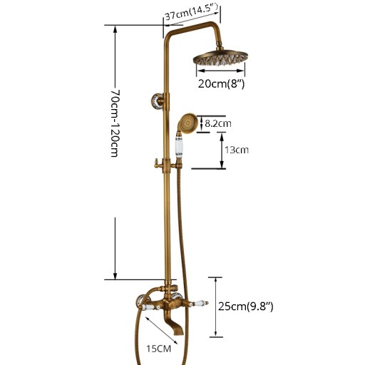 Stylowy zestaw prysznicowy Old Retro w kolorze pięknego mosiądzu