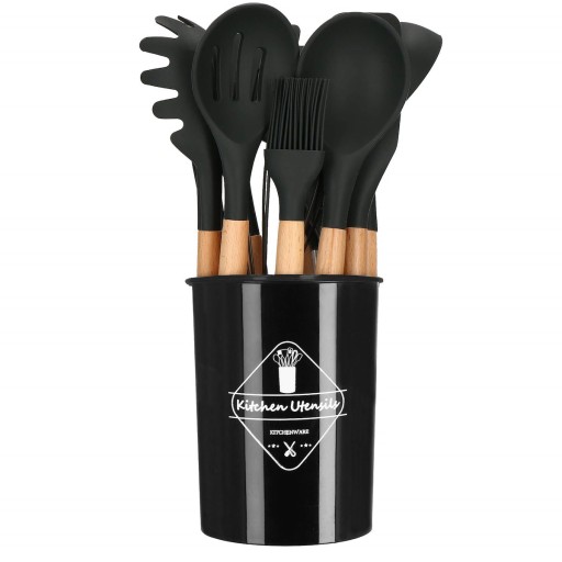 НАБОР КУХОННЫХ ПРИНАДЛЕЖНОСТЕЙ КУХОННАЯ ПОСУДА 12 шт. СИЛИКОНОВЫЙ ЧЕРНЫЙ НАБОР