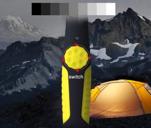 Latarka posiada pokrętło do regulacji mocy świecenia LED, dzięki czemu ustawisz jasność świecenia tak jak aktualnie potrzebujesz.