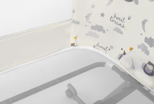 Zastosowany w łóżeczku dostawnym Natt materac jest wyjątkowo gruby – ma aż 5 cm. Dolny panel został natomiast wyposażony w system airy+, który zapewni jeszcze lepszą cyrkulację powietrza.