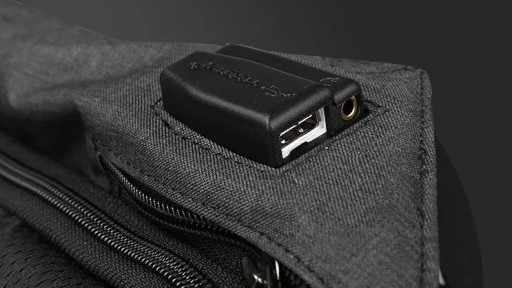 Plecak wyposażony jest w gniazdo usb oraz słuchawkowe, dzięki czemu można szybko naładować telefon lub posłuchać muzyki.