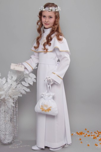 Długa alba komunijna dla dziewczynki z oddzielnym kołnierzem.