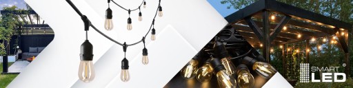 Girlandy ozdobne nadają się do użytku wewnątrz i na zewnątrz - w ogrodzie, na tarasie czy na balkonie. Na długości 20 metrów umieszczono 40 gniazd E27. W zestawie znajduje się 40 żarówek E27 1W w przyjemnej ciepłej barwie światła.