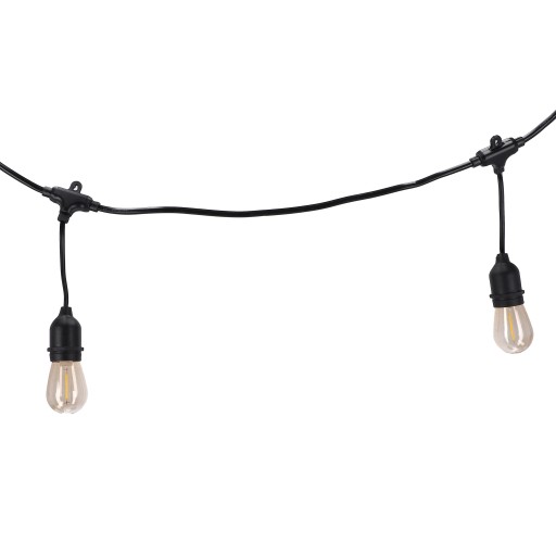 Girlandy ozdobne nadają się do użytku wewnątrz i na zewnątrz - w ogrodzie, na tarasie czy na balkonie. Na długości 20 metrów umieszczono 20 gniazd E27. W zestawie znajduje się 20 żarówek E27 1W w przyjemnej ciepłej barwie światła.