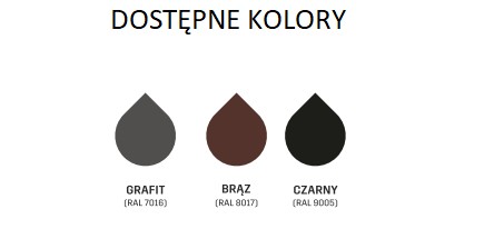 System dostępny w kolorze: CZARNYM ( ral 9005), GRAFITOWYM ( ral 7016 ) , BRĄZOWYM ( ral 8017) - kolor grafitowy i brązowy dostępny na naszych pozostałych aukcjach