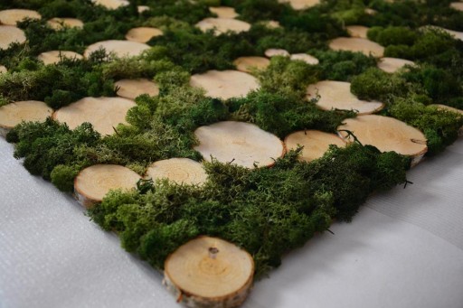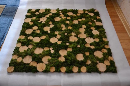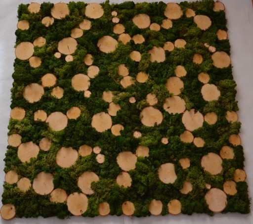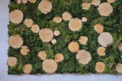panel 80x40cm wykonany z mchu poduszkowego na płycie hdf. Grubość panelu 5cm.
