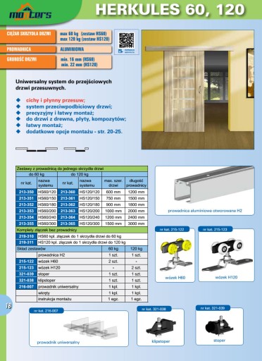 Do zestawu należy dokupić zestaw do drzwi przesuwnych herkules 60 lub 120kg (2szt) - na innych naszych aukcjach oraz prowadnicę H2.