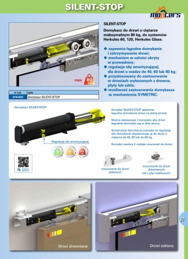 System SYMETRIC zamontowany na systemie HERKULES 60 może współpracować z systemem łagodnego domykania drzwi SILENT-STOP tworząc wyjątkowo funkcjonalne i komfortowe rozwiązanie.