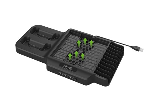 3w1 podstawka chłodząca do Xbox Series S i Series X, stacja dokująca do 2 padów wraz ze stojakiem na 11 gier firmy KJH.