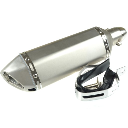 Uniwersalny tłumik nie posiadający żadnych blokad, katalizatora czy innych elementów spowalniających przepływ spalin. Tłumik nadaje motocyklowi ciężkie, rasowe basowe brzmienie. Znakomity wygląd i dźwięk przykuje uwagę niejednego fana motoryzacji!