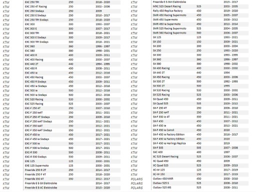 - KTM SX 250 1993 - 2020