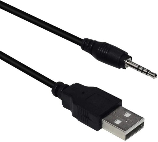 Kabel USB 2.0 - MiniJack 3,5mm do ładowania słuchawek bezprzewodowych oraz innych urządzeń.