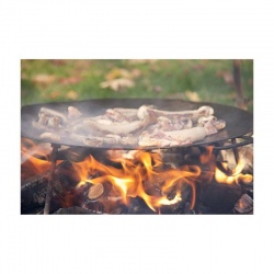 Patelnia posiada odkręcane nóżki, dzięki temu można ją postawić bezpośrednio na palenisku lub grillu.