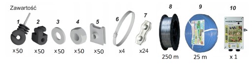 Zestaw ten posiada wszystko co potrzebne do wykonania ogrodzenia elektrycznego.