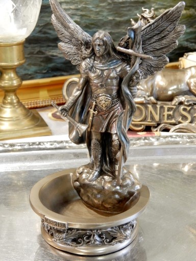 Zapraszam do zakupu kropielnicy z figurką przedstawiającą archanioła Gabriela. Jest aniołem zwiastowania, zmartwychwstania, miłosierdzia, kary, śmierci i objawienia. Figurka jest niezwykle realistyczna, detale odtworzone ze szczególną pieczołowitością.