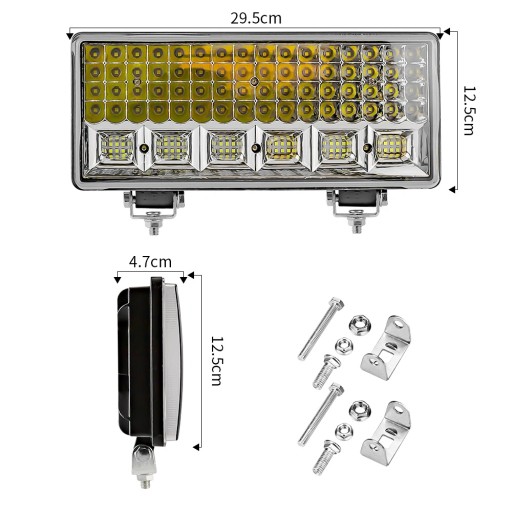 12 calowa lampa robocza wyposażona jest w wysokiej jakości mocne diody LED - 100 sztuk. Świecą one czystym światłem o wysokiej intensywności, a czas ich reakcji jest natychmiastowy. Mocne zimne białe światło jest do 10 razy jaśniejsze niż w tradycyjnych żarówkach halogenowych.