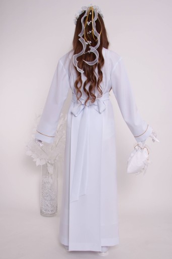 Model tej dziewczęcej alby zdobi złoty sznureczek.