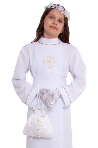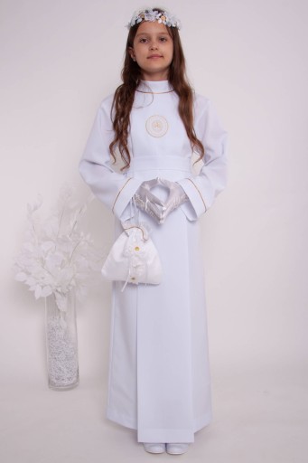 Klasyczna i elegancka komunijna alba dla dziewczynki ze stójką.
