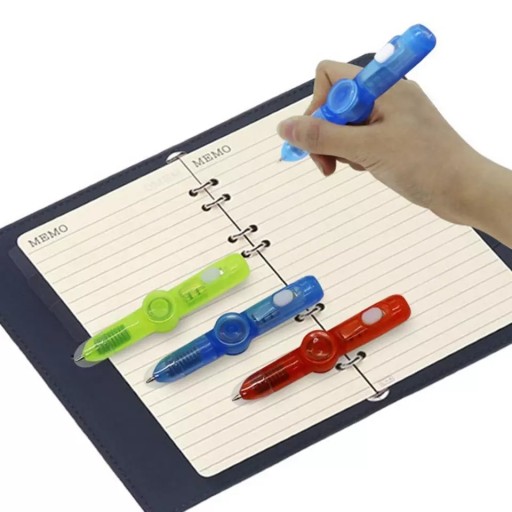 Nietuzinkowy długopis kręcący się i świecący.