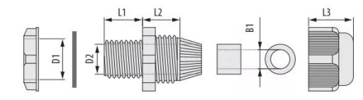 Dławica PG przeznaczona do uszczelniania przejść przewodów przez obudowy urządzeń elektrycznych.