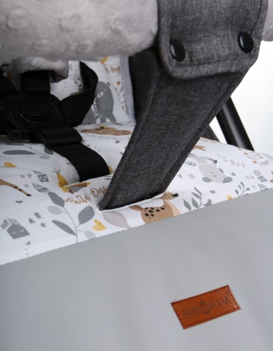 Wkładka Babymam została tak zaprojektowana, aby można było ją swobodnie dopasować do większości wózków spacerowych dostępnych na rynku. Jest łatwa do utrzymania w czystości – może być prana w pralce. Posiada aż 8 otworów na pasy, które pozwalają na łatwą regulację.