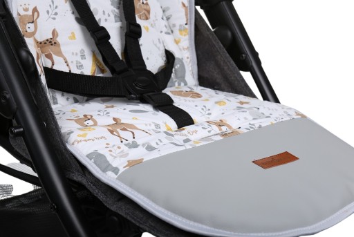 Wkładka jest wykonana z atestowanych materiałów najwyższej jakości. Po założeniu pasów, wkładka dopasuje się do wózka, nie przesuwa się.