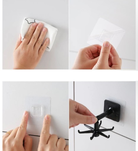 Jego montaż jest prosty, intuicyjny. Wystarczy oczyścić i odtłuścić powierzchnię, na której zamierzamy umieścić hak, następnie przykleić dołączony panel z klejem, docisnąć i pozbyć się jak największej ilości pęcherzyków powietrza. Odczekać 24h zaczepić hak oraz przedmioty które chcemy mieć pod ręką.