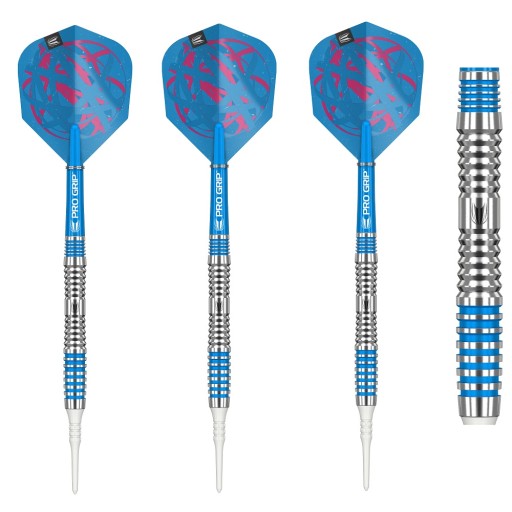 Lotki w wersji softtip z plastikowymi końcówkami przeznaczone do gry na tarczach elektronicznych. Opakowanie zawiera 3 kompletne lotki razem z piórkami i shaftami.