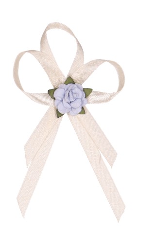 Materiał: wstążka satynowa, kwiatuszek papierowy