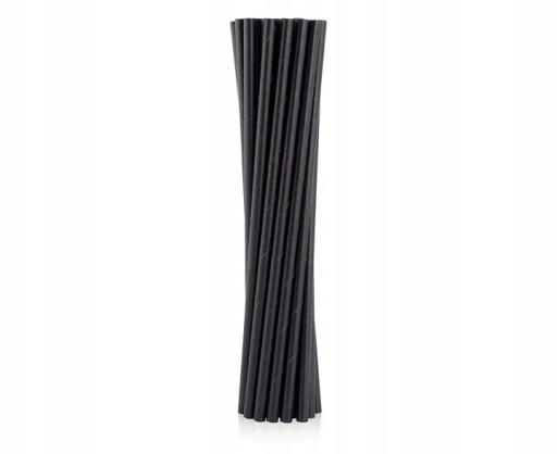 Biodegradowalne słomki papierowe do picia, czarne. Nadają się zarówno do ciepłych, jak i zimnych napojów. Papierowe słomki nie zmieniają smaku pitych napojów i są w pełni biodegradowalne