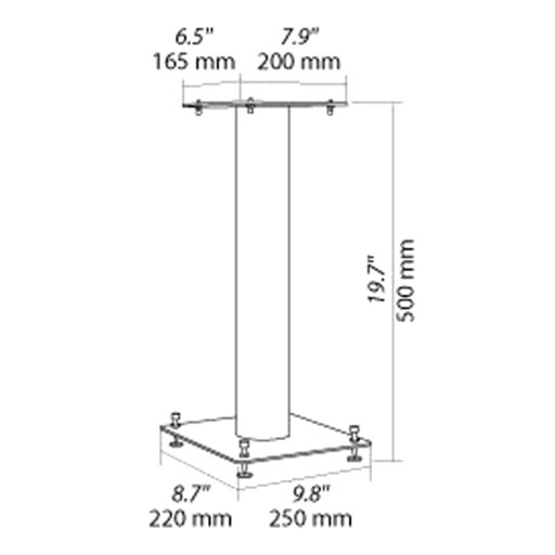 - Wymiary: 165 x 200 mm (wymiary półki) / 250 x 220 mm (wymiary dolnej podstawy) / wysokość 500 mm